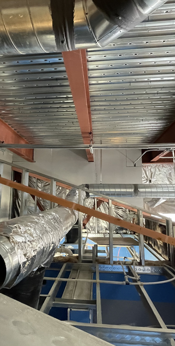 Our first step was a detailed plan review and site visit, which revealed a major oversight: a 38-foot clerestory running through the space had not been properly addressed for air circulation, vapor barriers, or demolition of existing conditions.